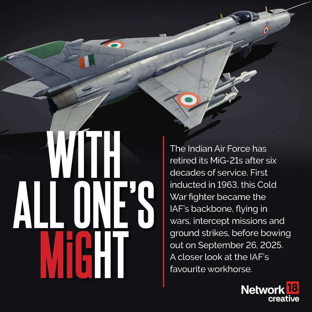 The MiG-21 joined the Indian Air Force (IAF) in 1963, becoming India’s first supersonic jet fighter. For over six decades, it shaped the nation’s air combat history, fought in wars, trained countless pilots and earned both glory and respect before retiring in 2025.
