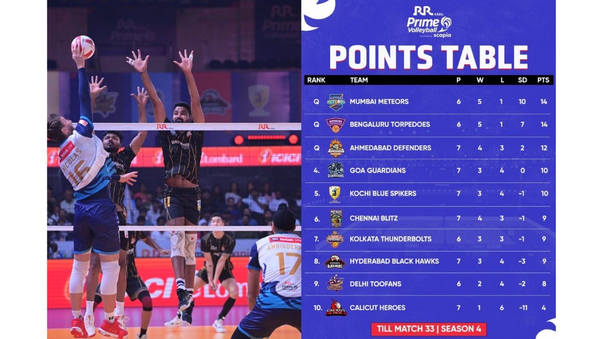 Hyderabad (Telangana) [India], October 24: Kochi Blue Spikers wrapped up their RR Kabel Prime Volleyball League 2025 Season 4 journey in style, registering a confident 15–13, 14–16, 17–15, 15–9 triumph over Ahmedabad Defenders at the Gachibowli Indoor Stadium, Hyderabad, on Tuesday. Erin Varghese was named the Player of the Match for his all-round brilliance. The outcome, however, had no impact on Ahmedabad’s table position, as they had already sealed a berth in the semi-finals.